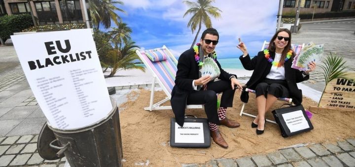 Según fuentes de Bruselas, además del país centroamericano los 27 agregarán también a las Islas Caimán, Seychelles y Palau. Turquía se salvó de ingresar al grupo. Los activistas de la ONG Oxfam durante una...