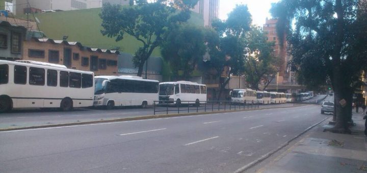 Calles del centro de Caracas llenas de autobuses por marcha oficialista