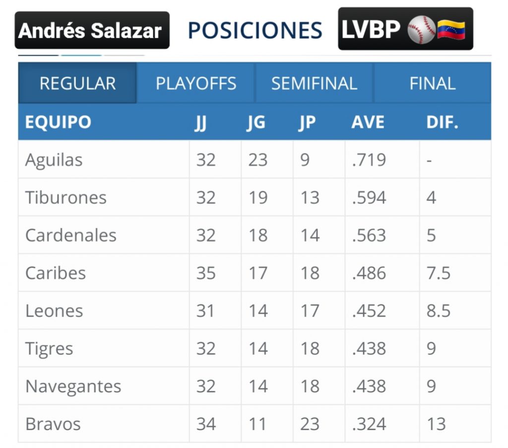 Así amanece hoy domingo, 15/12 la tabla de posiciones de la #LVBP