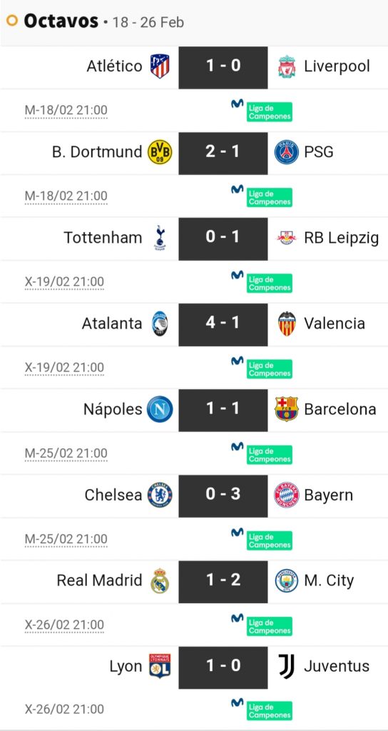 UEFA Champions League: 8vos de Final – Partidos de Ida