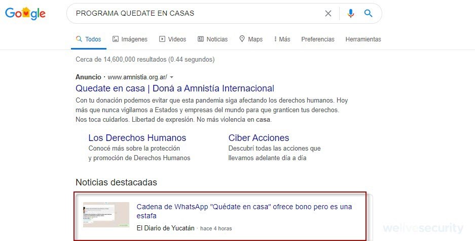 Una de las recomendaciones de ESET es siempre buscar información adicional sobre el mensaje que se recibe. Lo ideal es realizar una simple búsqueda, ya que en casos como este podrían corroborar, como en este caso, que este engaño ya fue reportado.