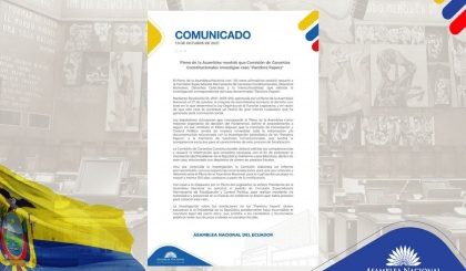 Además, está prevista la continuación de la sesión 672 del Pleno, con el fin de conocer y discutir sobre las denuncias de corrupción que se han hecho públicas en el país durante las últimas semanas. Acto seguido, los asambleístas conocerán el informe respecto al pedido de aprobación del Convenio sobre Imprescriptibilidad de los Crímenes de Guerra y de los Crímenes de Lesa Humanidad, preparado por la Comisión de Soberanía y Relaciones Internacionales.