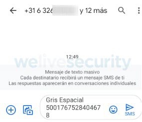 Imagen 7. Mensaje que enviará la víctima vía SMS a 13 números distintos
