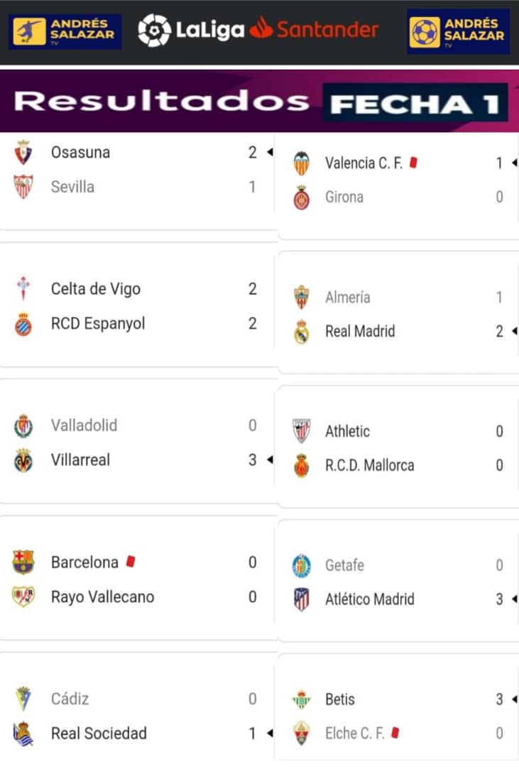 🇪🇦 LaLiga 2022/23: Resultados de la fecha 1