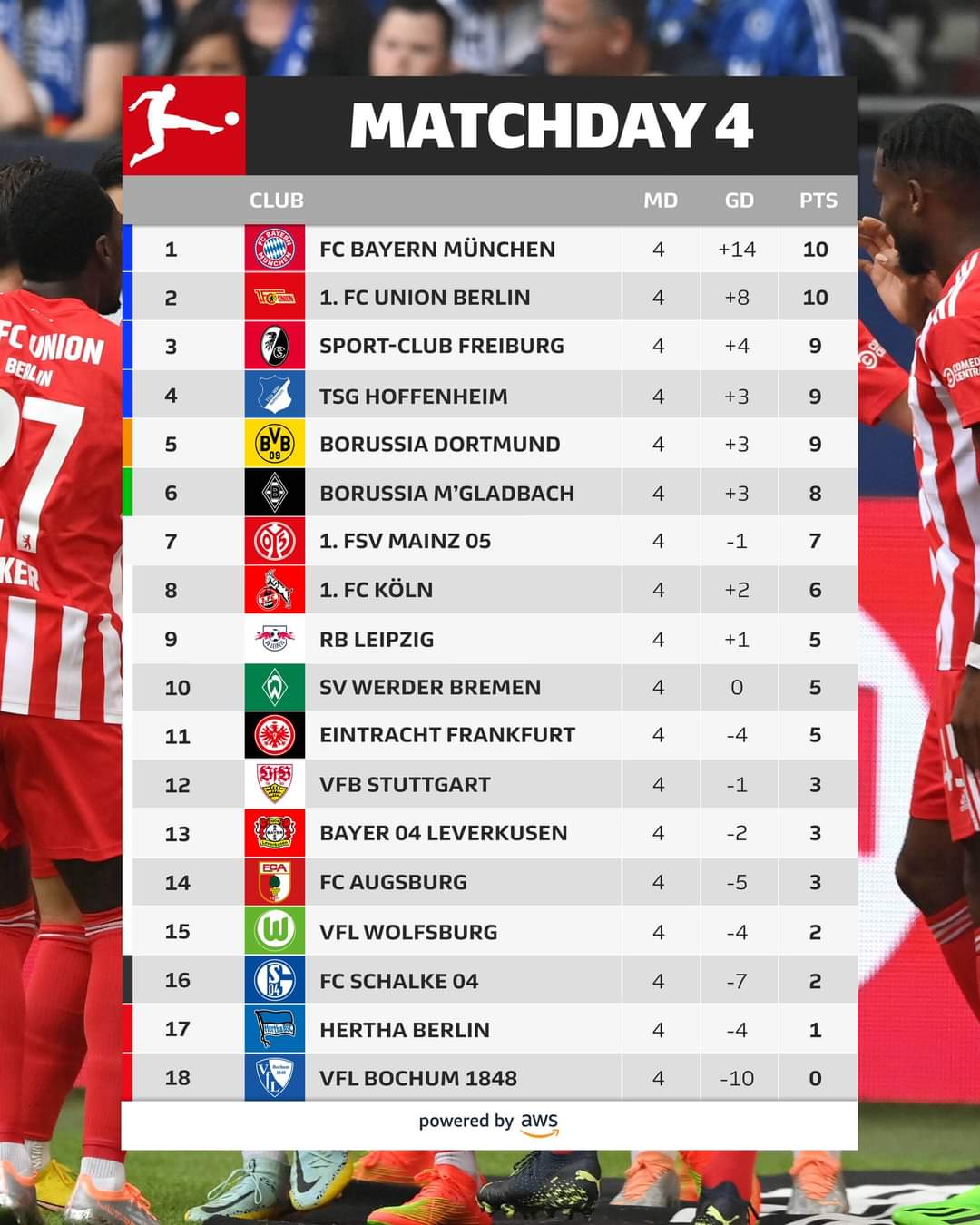 Bayern y Unión Berlin lideran la Bundesliga luego de 4 fechas