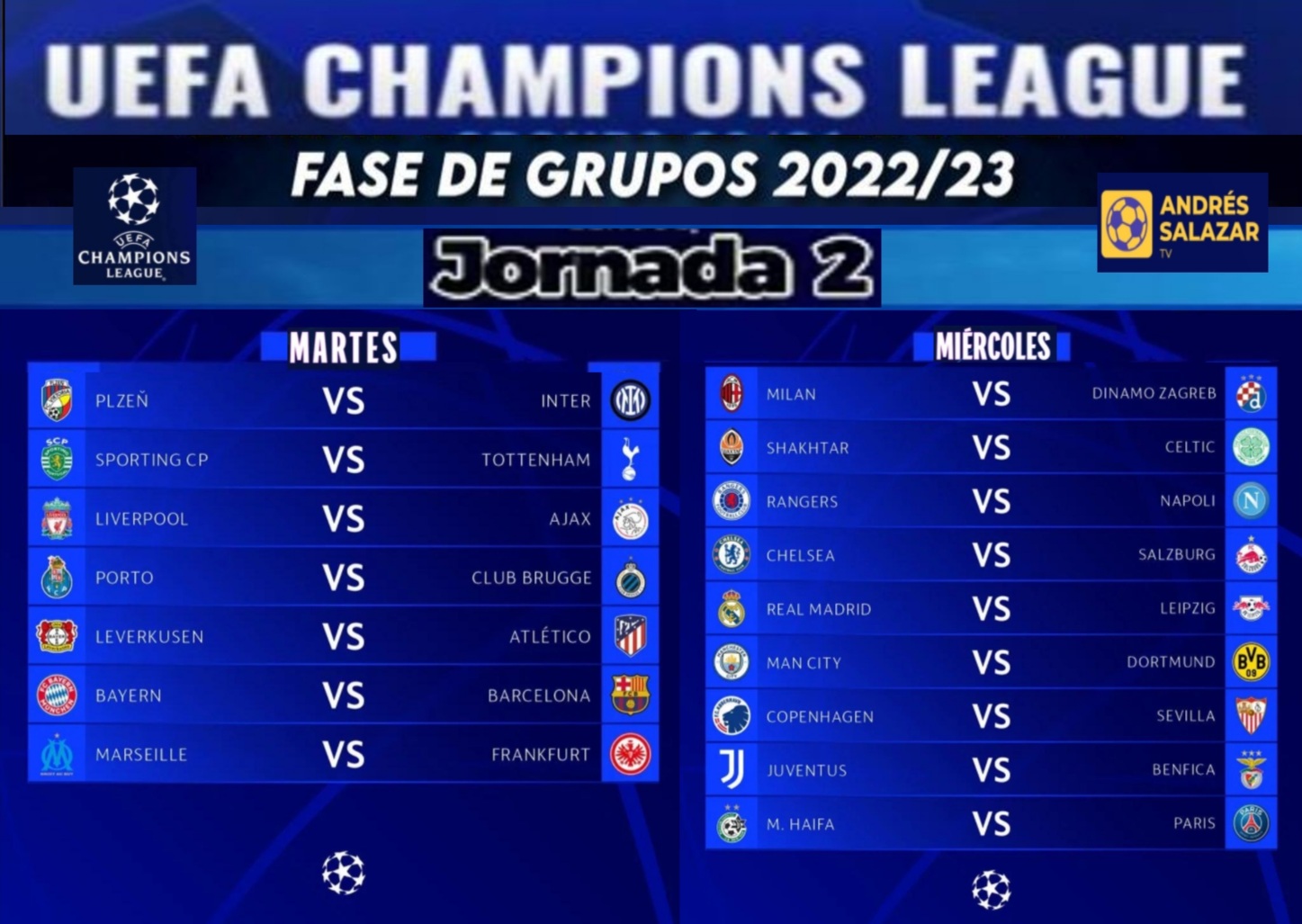 Así se jugará la jornada 2 de la Champions League 2022/23