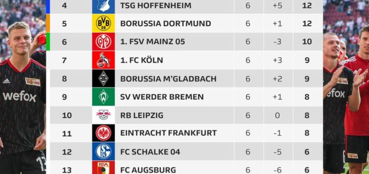 Sorpresivamente el Unión Berlin es el líder de la Bundesliga con 14 puntos luego de 6 jornadas disputadas. Freiburg es segundo con 13 unidades y el Bayern Múnich tercero con 12. A continuación, los...