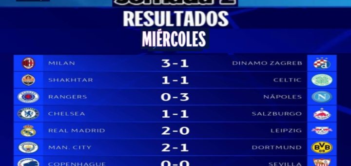 Estos fueron los resultados de este miércoles 14 de septiembre, correspondientes a la segunda jornada de la ‘Fase de Grupos’ de la Champions 2022/23: 🇮🇹 Milan (3-1) Dinamo Zagreb ️ 🇭🇷 🇺🇦 Shakhtar (1-1)️...
