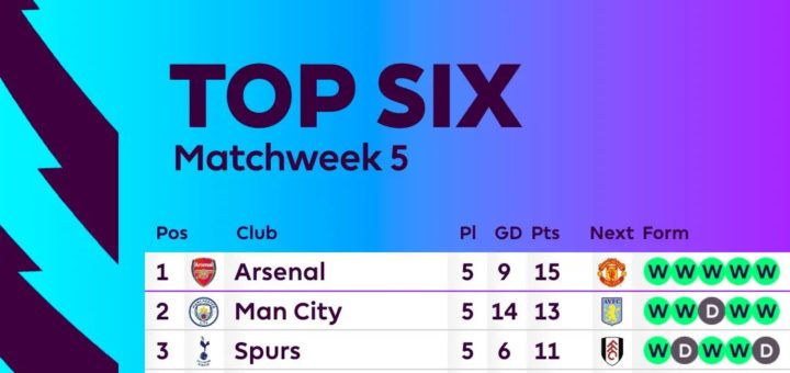 La mejor Liga del mundo sigue más caliente que nunca. El Arsenal sigue con paso perfecto tras 5 jornadas disputadas e igual número de victorias. Por su parte, Manchester City con Haaland como su...