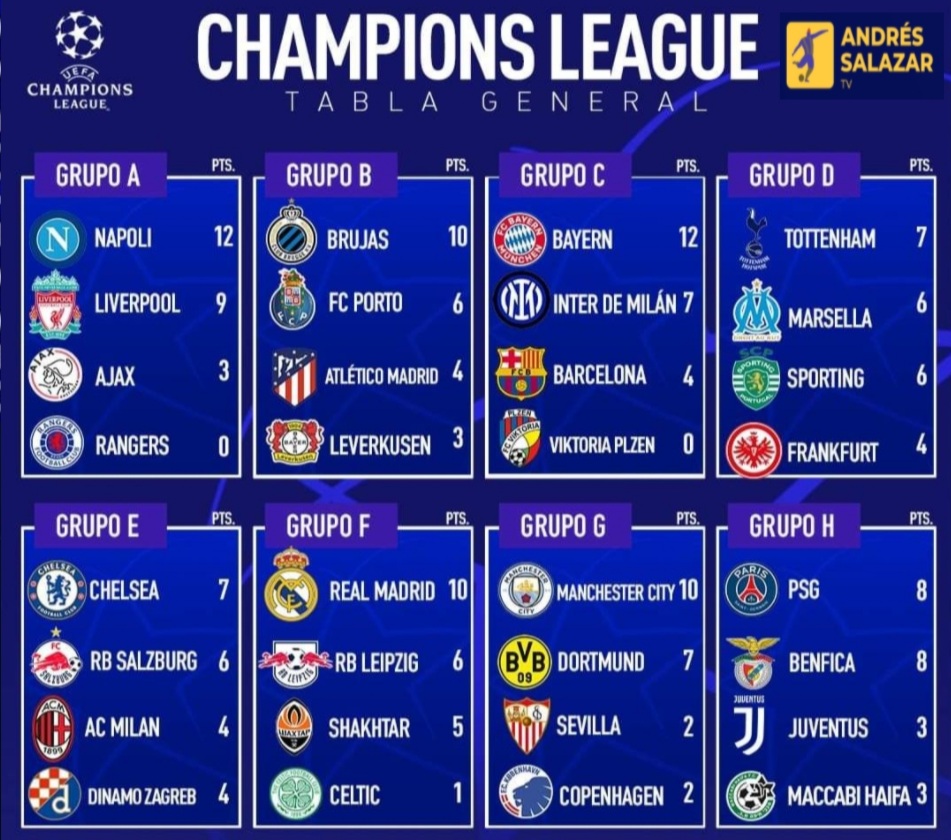 Quedan tan solo 2 jornadas para que culmine la fase de grupos de la Liga de Campeones y grandes equipos como el Barcelona, Atlético de Madrid, Juventus y Milan estan quedándose fuera de la competición.