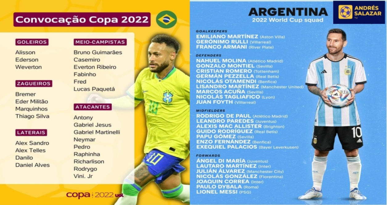 Convocados de Brasil y Argentina para el Mundial de Qatar 2022