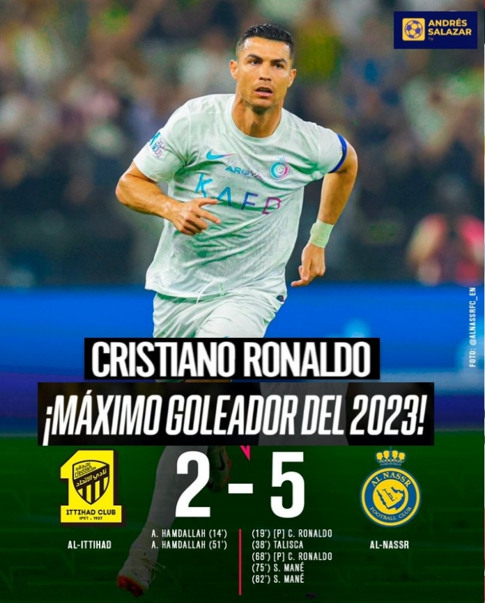 Cristiano Ronaldo se convirtió en el máximo goleador del año 2023