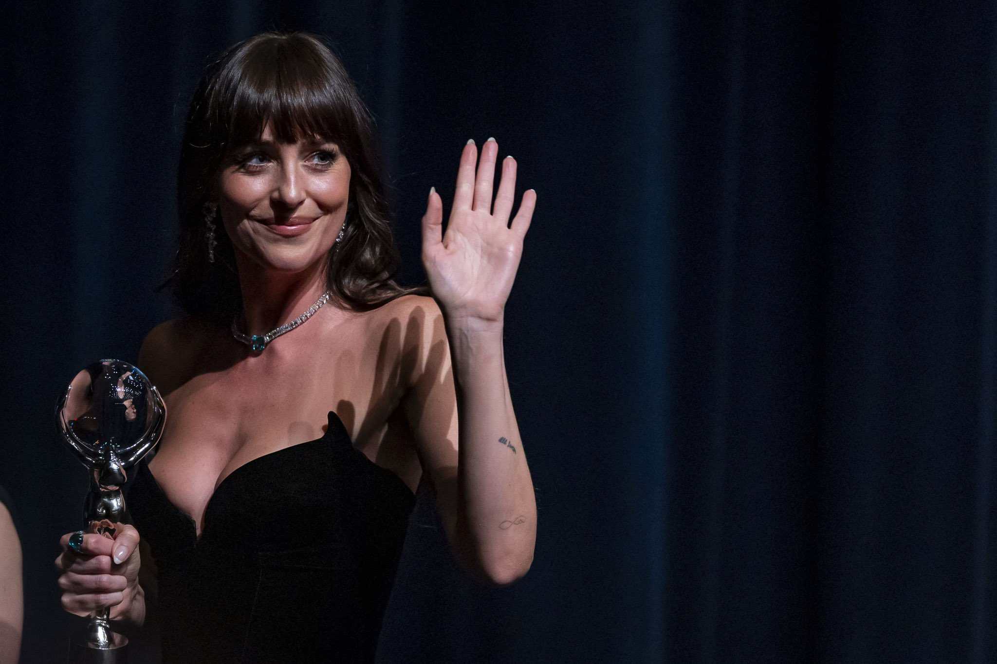 «Estoy encantada de estar aquí con dos películas que me importan mucho, y espero que enciendan fuego en los corazones y la mente de la gente, porque son sobre el amor y cómo nos tratamos y lo que queremos para nosotros», dijo Johnson tras recibir el galardón de manos del director ejecutivo, Krystof Mucha.