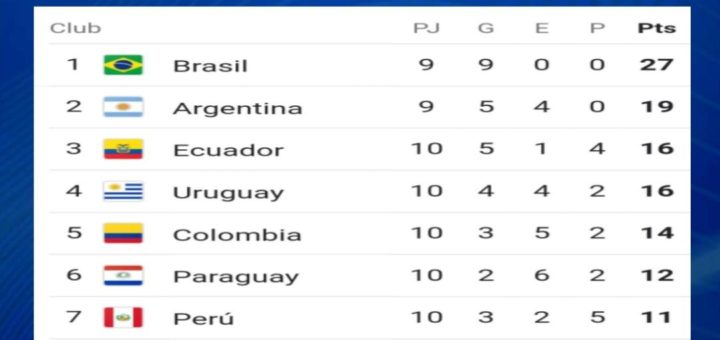 Así marcha la tabla de posiciones de las Eliminatorias Sudamericanas #Qatar2022 luego de 10 jornadas La ‘canarinha’ sufrió pero volvió a ganar y sigue invicta. Ecuador goleó a Bolivia y Perú hundió más a...