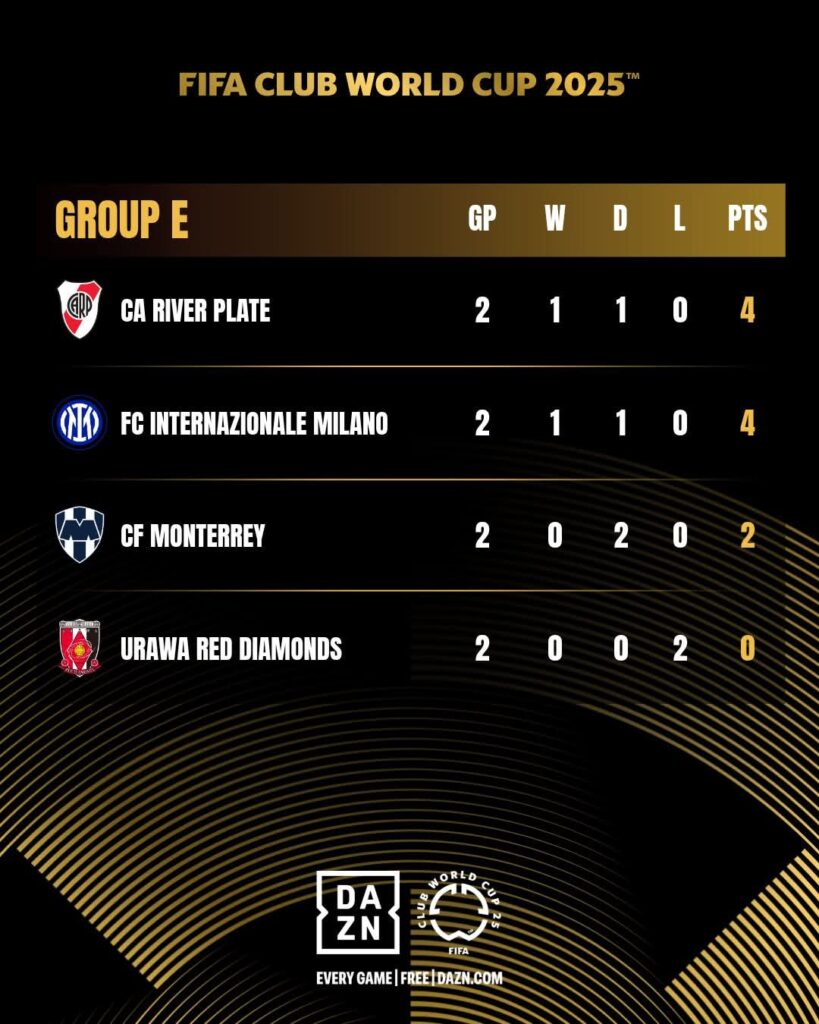 Así quedó la tabla de posiciones del Grupo D del Mundial de Clubes 2025 tras 2 jornadas disputadas: