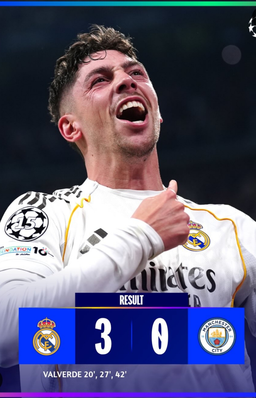 El RRey de Europa» impone su ley: Un Valverde histórico destroza al City en el Bernabéu