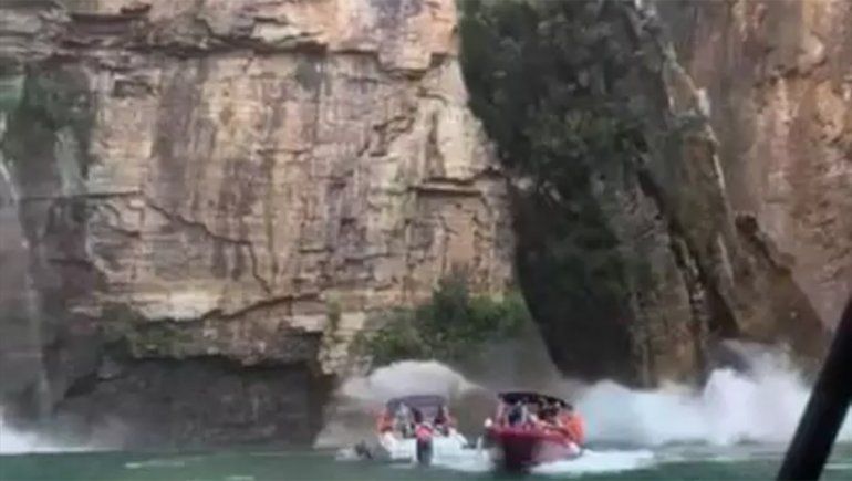 Un video realizado desde una de las lanchas de la zona muestra el momento exacto de la caída de la roca sobre las otras embarcaciones y se hizo viral rápidamente.