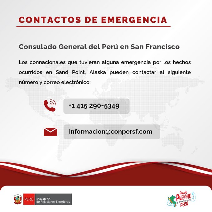 El Ministerio de Relaciones Exteriores del Perú comunicó que tras el sismo en Sand Point, Alaska, no se han registrado peruanos afectados, información que al cierre de esta edición confirmamos.
