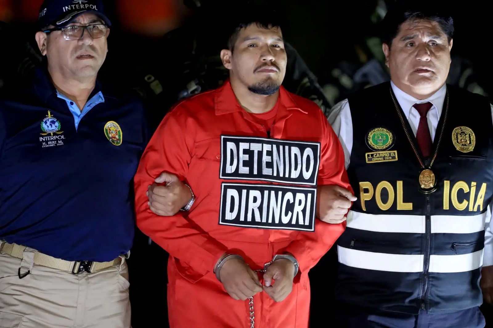 El presunto forjador y jefe de la banda Los Injertos del Cono Norte arribó al Callao en medio de severas medidas de seguridad, que incluyeron la presencia de numerosos efectivos de la Unidad de Acciones Tácticas de la Policía, con armamento de grueso calibre, en los alrededores de la Dirección de Aviación Policial.