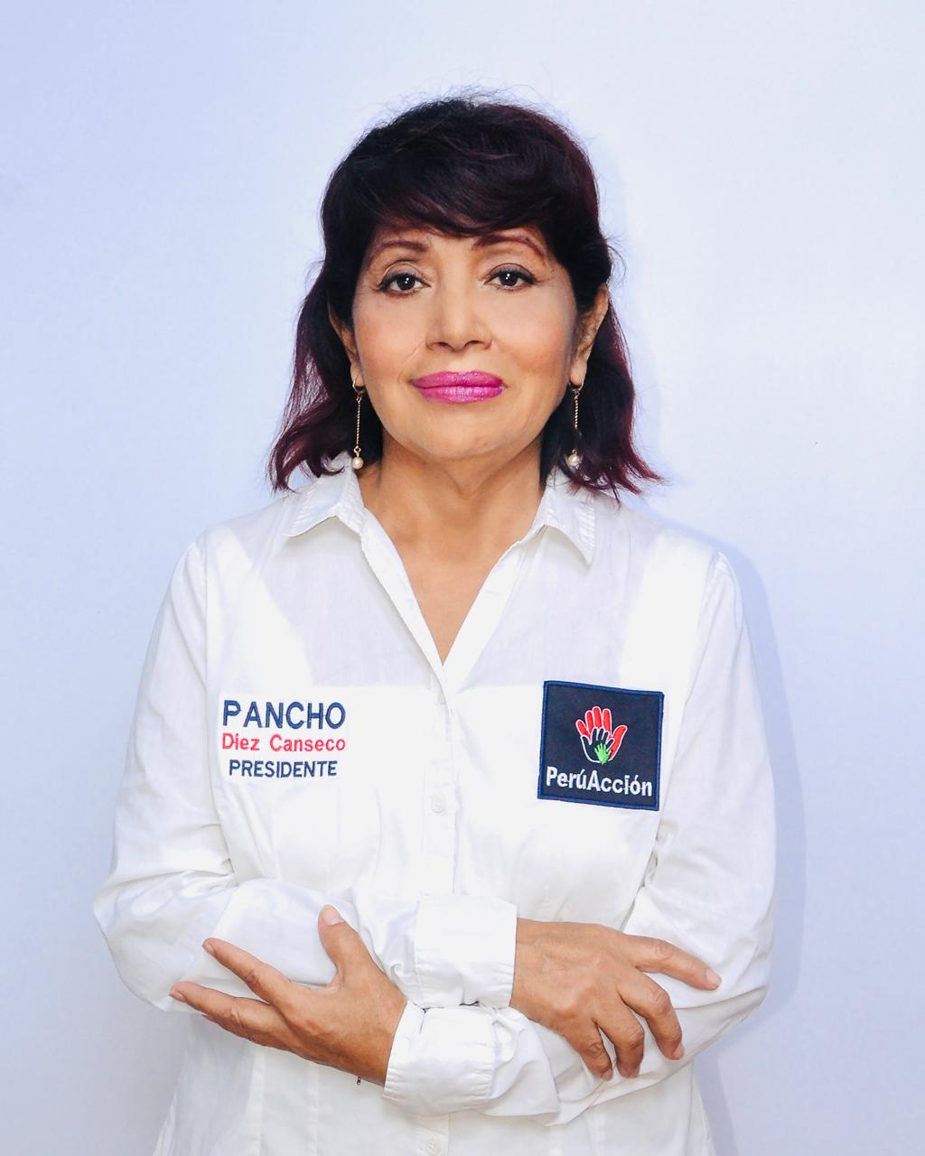 La empresaria Victoria Ramírez Quijandria postula al Senado Nacional en la lista de Perú Acción con el número 10, que tiene como símbolo una mano.