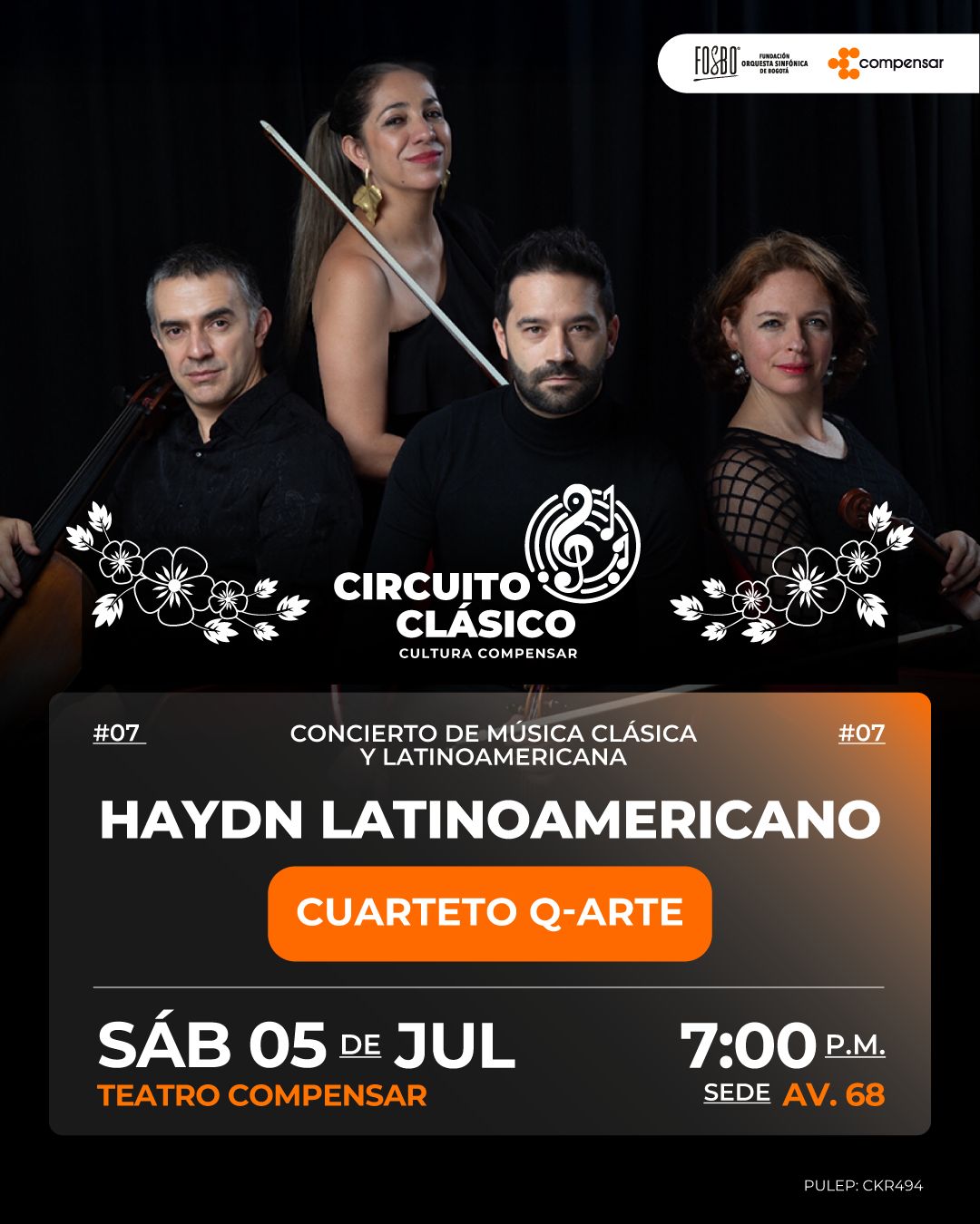 Avanza con éxito el Circuito Clásico de Compensar y La Fosbo, Fundación Orquesta Sinfónica de Bogotá, en una nutrida programación que reúne los mejores exponentes de todos los géneros de la música y su diversidad sonora. Para el próximo sábado 5 de julio el cuarteto de cuerdas Q-ARTE, ofrece un recorrido desde los cimientos del clasicismo hasta la vibrante diversidad de la música latinoamericana.