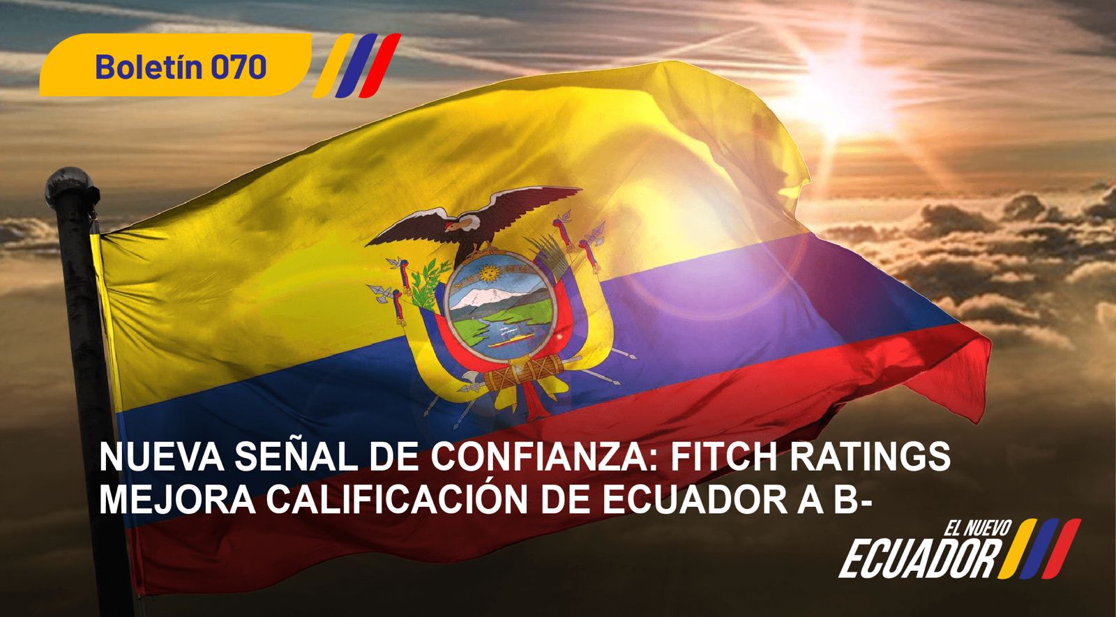 Fitch Ratings subió la calificación de deuda del Ecuador de CCC+ a B- y considera que la perspectiva económica del país, en el largo plazo, es estable.