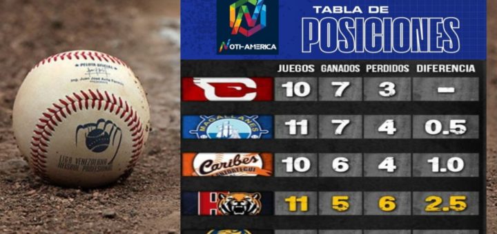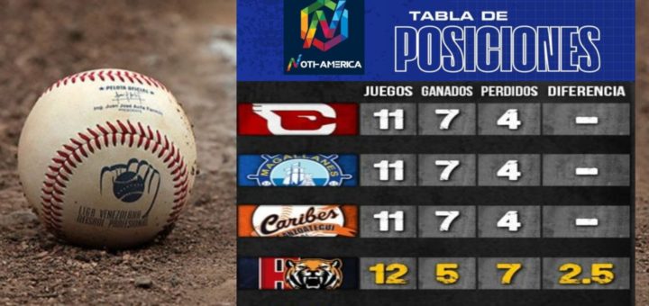 Cardenales, Magallanes y Caribes comparten el primer lugar del todos contra todos. Resultados de ayer, lunes 10 de enero: Caribes 4 – 3 Cardenales Tigres 6 – 9 Leones Descansó Magallanes. Juegos programados para...