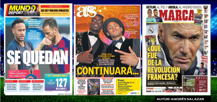 Así amanecieron hoy martes 03 de septiembre de 2019, las Portadas de los principales diarios Deportivos en el Mundo: Diario SPORT (Barcelona) MUNDO DEPORTIVO (Barcelona) Diario MARCA (Madrid) Diario AS (Madrid) Corriere dello Sport...