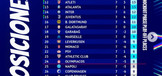 A falta de 1 jornada, así está la tabla de posiciones de la Champions League 2025/26