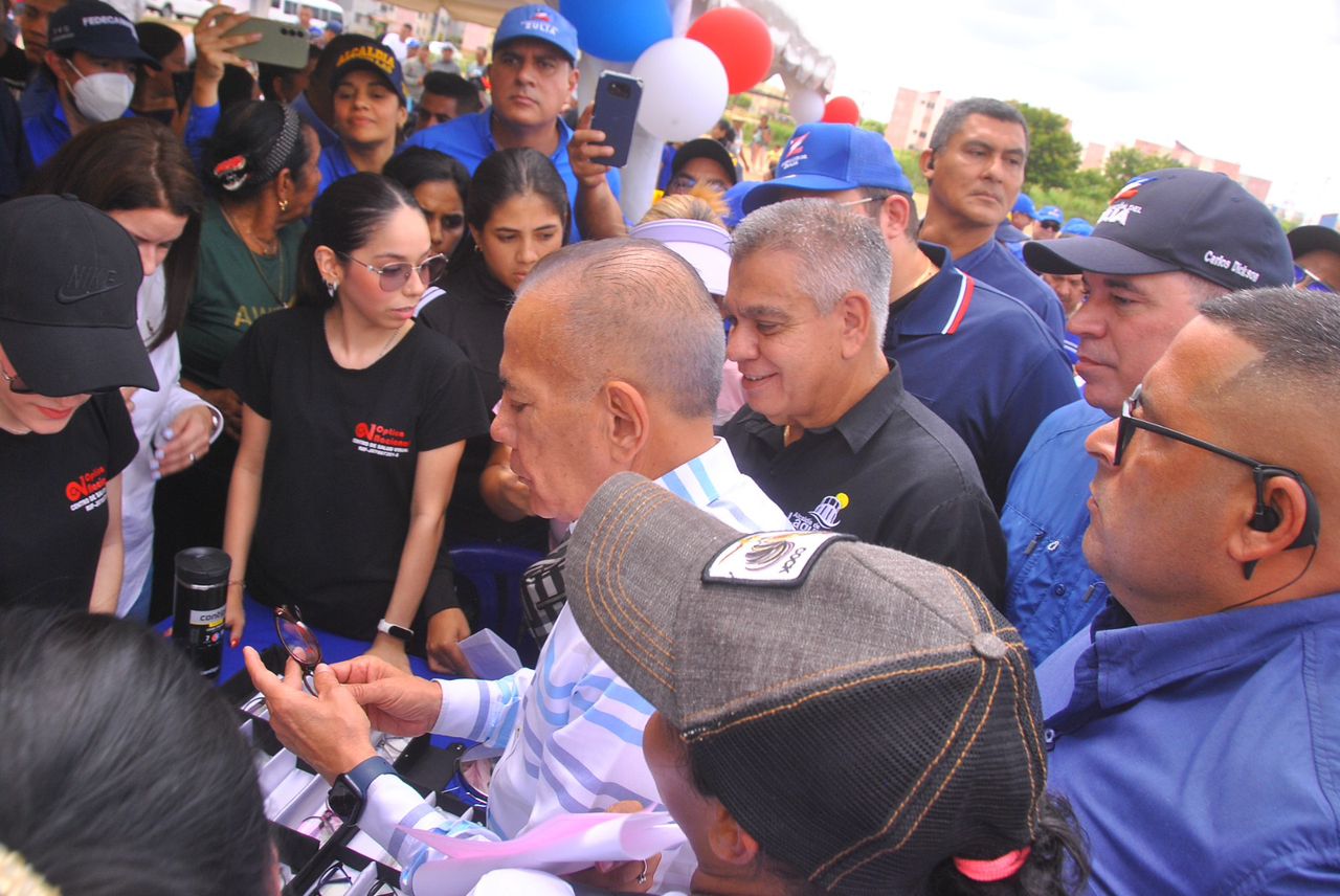 «En esta visita de hoy a Lagunillas, donde se siente y se ve el cambio, acá volvió la esperanza, la alegría de la mano con el alcalde «Cheo» Mosquera. De aquí se fue la destrucción, se alejaron los vientos malos que antes habían en el Zulia y Lagunillas. Hoy traemos el programa «Con Bueno Ojos» para darle lentes gratis a la población.