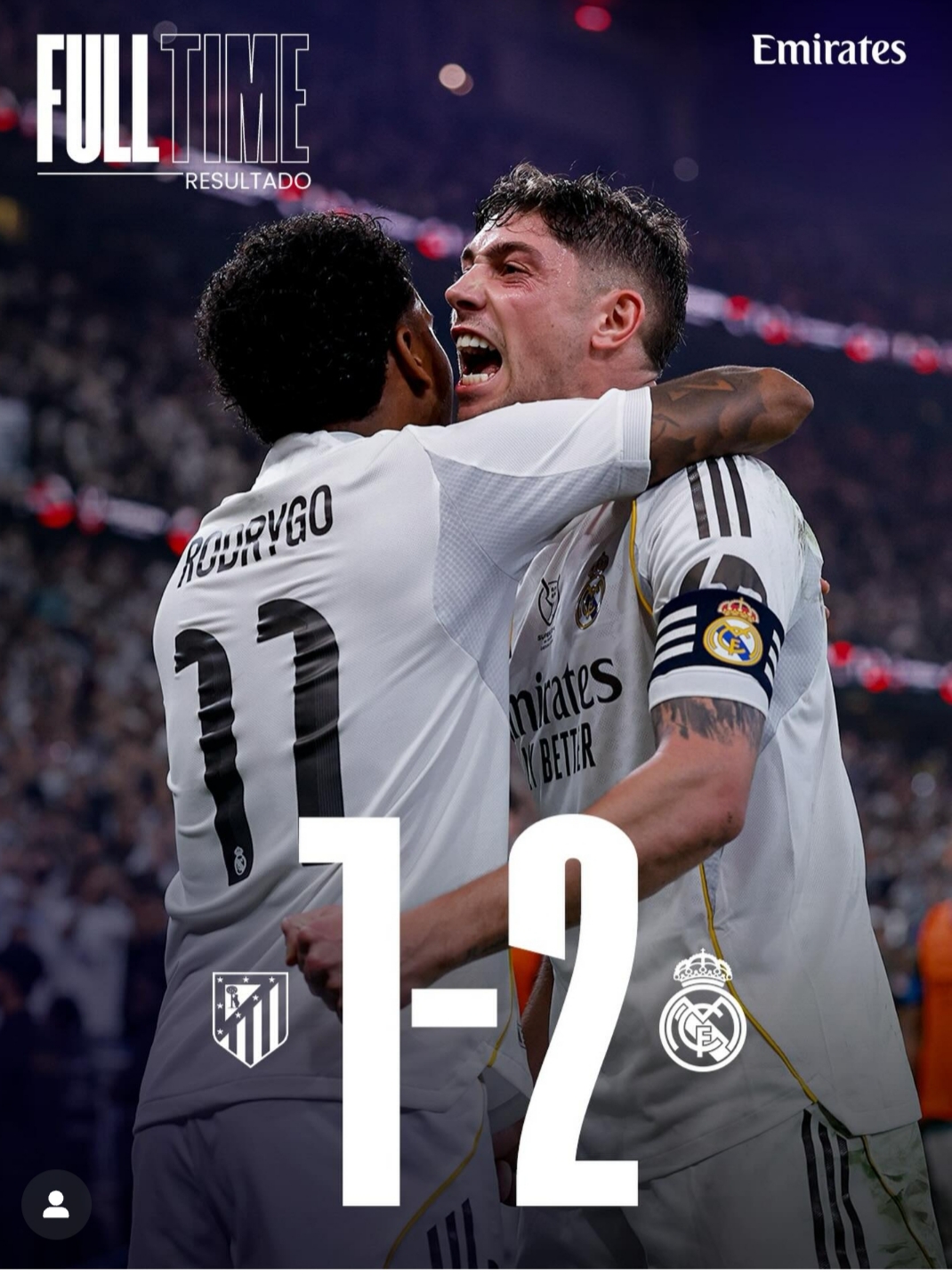 - Resultado: Atlético de Madrid 1-2 Real Madrid.