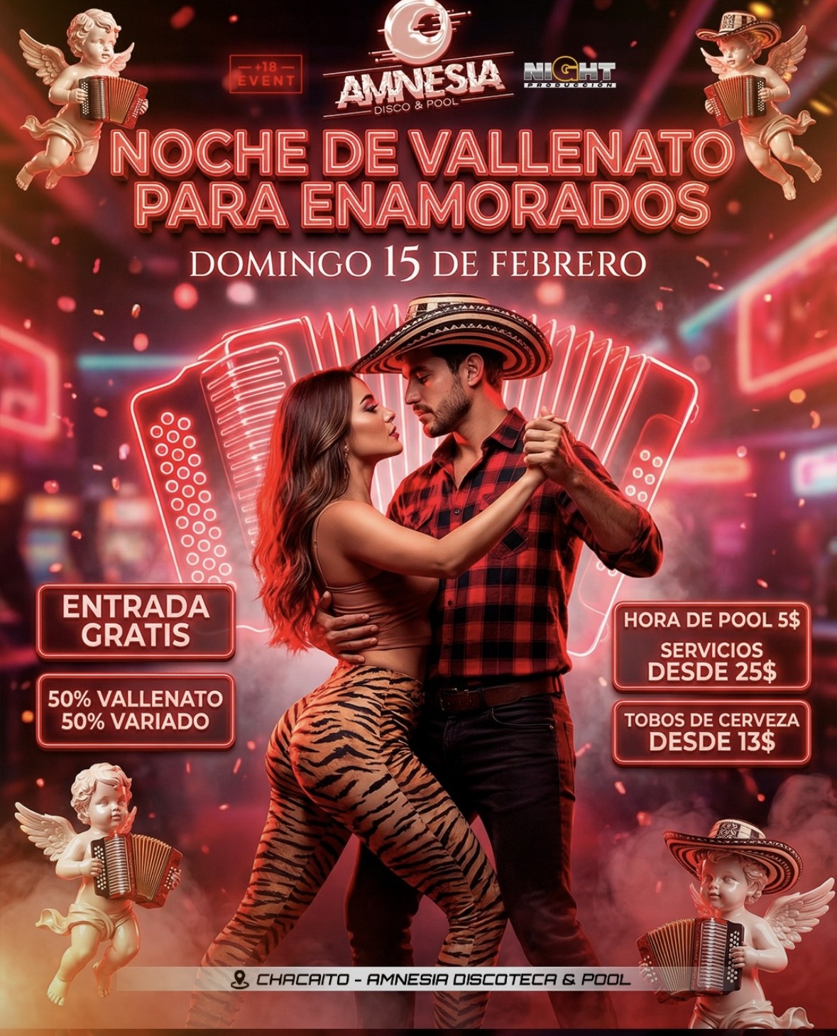 ¡Hoy es el día! Amnesia Disco & Pool celebra su «Noche de Vallenato para Enamorados» en el Chacaito, una fiesta temática llena de ritmo, romanticismo y diversión para todas las parejas.