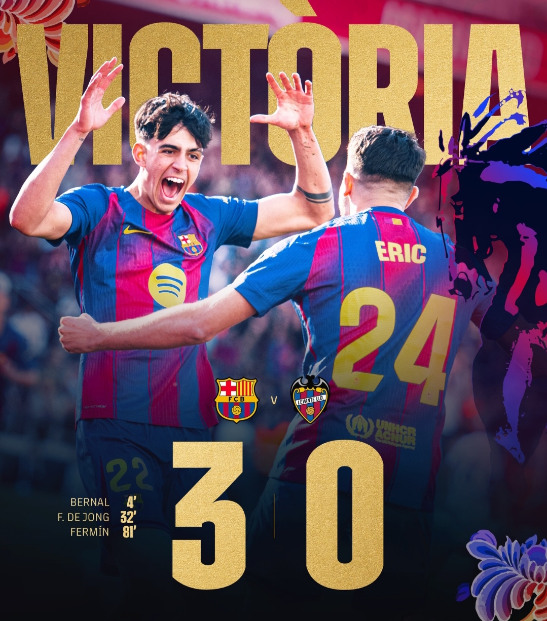 El dominio culé fue absoluto, registrando una posesión cercana al 73% y anulando cualquier intento de respuesta del Levante. Al minuto 32, el capitán Frenkie de Jong amplió la ventaja tras una gran asistencia de João Cancelo, sentenciando prácticamente un encuentro que el Barça manejó a su antojo.
