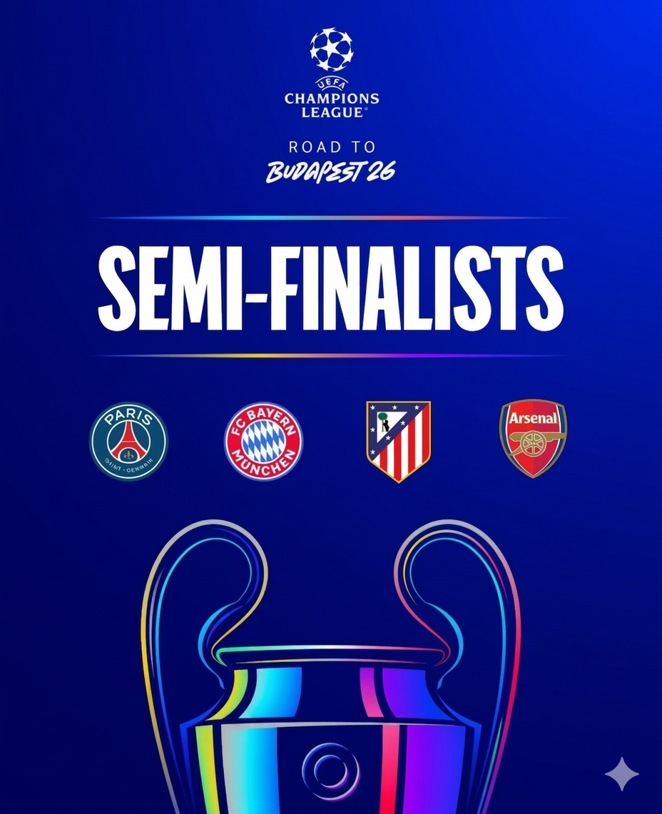 Los últimos cuatro supervivientes en la lucha por el título son: el París Saint-Germain (Francia), el Bayern de Múnich (Alemania), el Atlético de Madrid (España) y el Arsenal (Inglaterra). Cuatro equipos con estilos distintos, hambre de gloria y un solo objetivo: llegar a la gran final en Hungría.