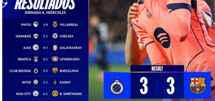 La segunda mitad de los partidos jugados este miércoles, 5 de noviembre de 2025, correspondiente a la jornada 4 de la fase de liga de la UEFA Champions League trajo duelos intensos y movimientos...